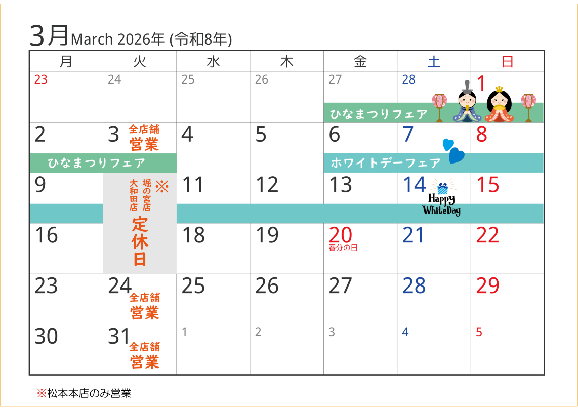 【2/20~23、2/27~3/3】ひなまつり限定商品のご予約はこちらから。
