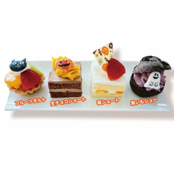 ハロウィンのデザインに仕上げたプチケーキ4個セット。