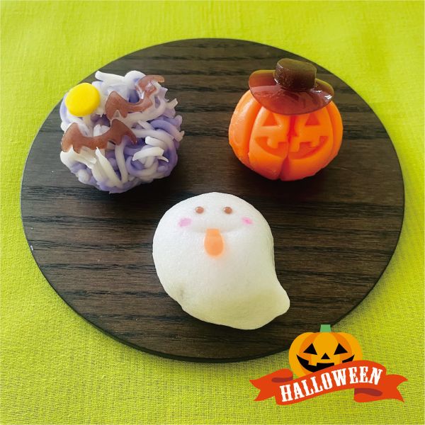 かぼちゃやおばけ、コウモリをモチーフにしたかわいい上生菓子。