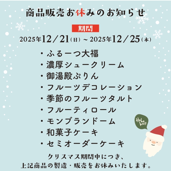 12/21(日)~12/25(木)のクリスマス期間中、販売を休止させていただく商品のお知らせです。