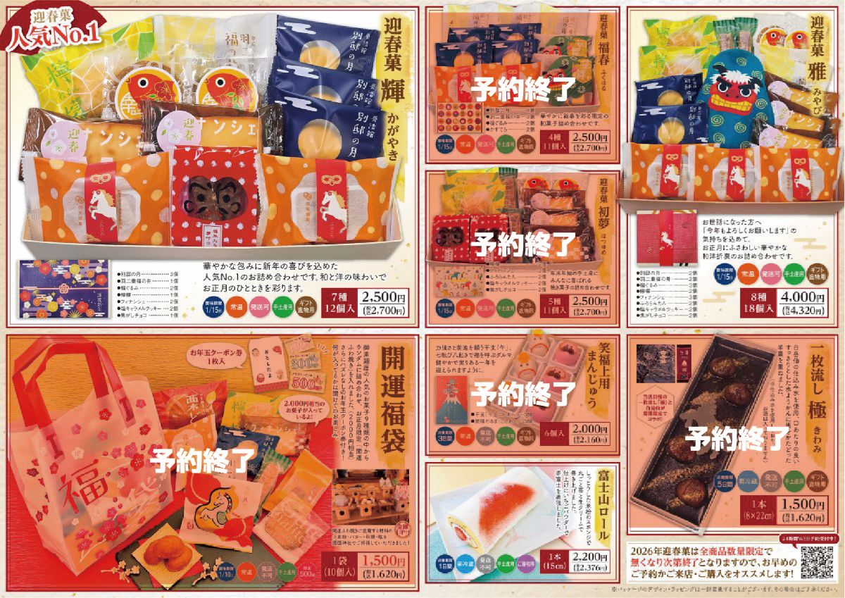 【完売御礼】『迎春菓<初夢><福春>』『一枚流し<極>』『笑福上用まんじゅう』ご予約終了しました