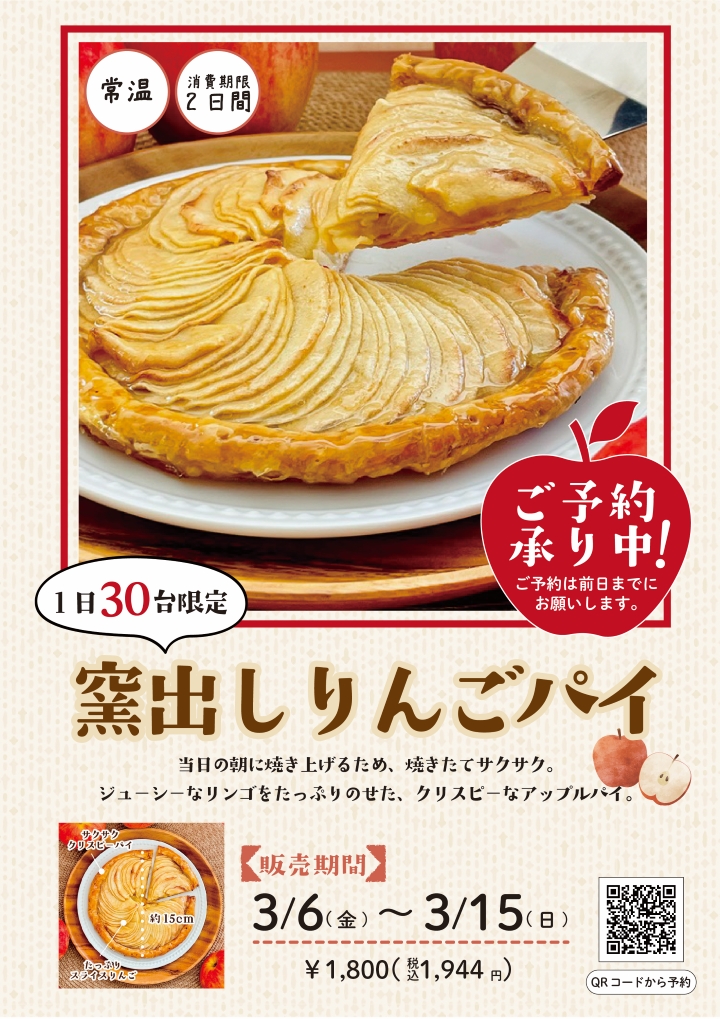 3/6(金)~3/15(日)『窯出しりんごパイ』ご予約承り中!