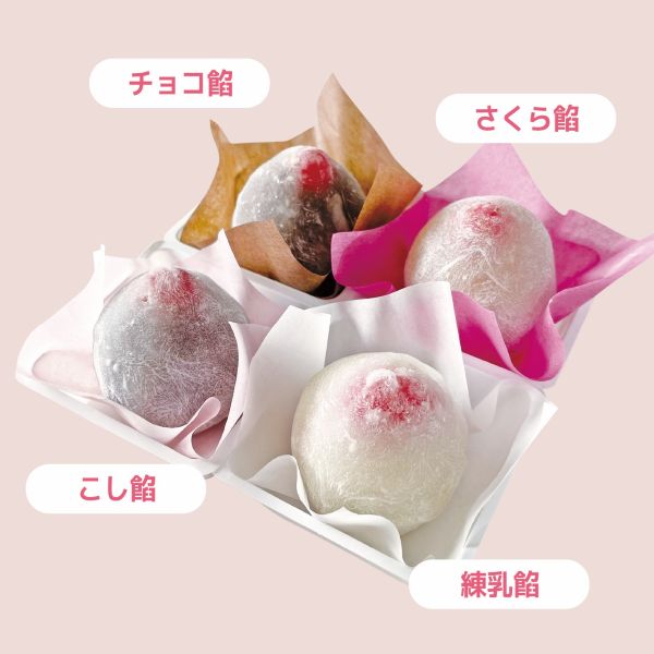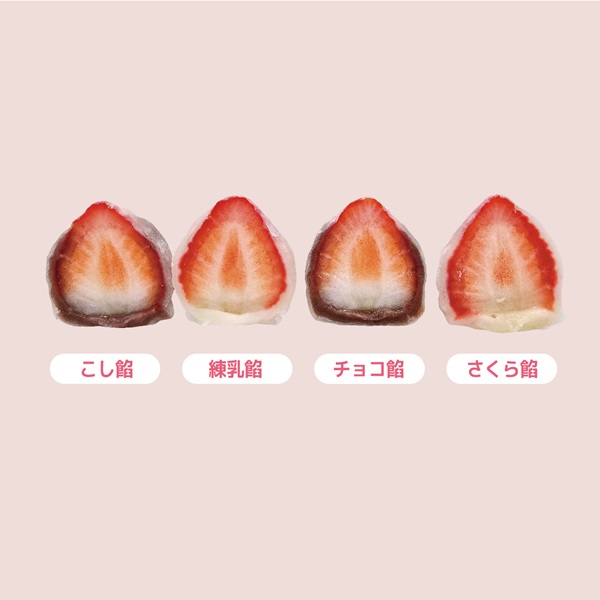 - いちご大福(こし餡、練乳餡、さくら餡、チョコ餡)