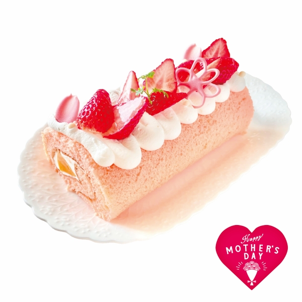 [5/6~5/10]甘酸っぱい苺をトッピングしたロールケーキ。中には黄桃を使用。