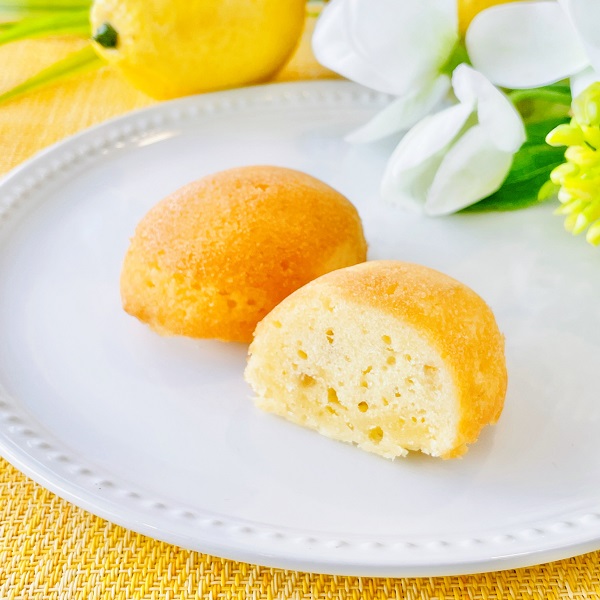 しっとり、ふっくらとした生地にレモンピールを混ぜ込み、シロップをかけて仕上げました。